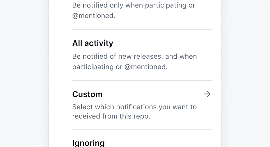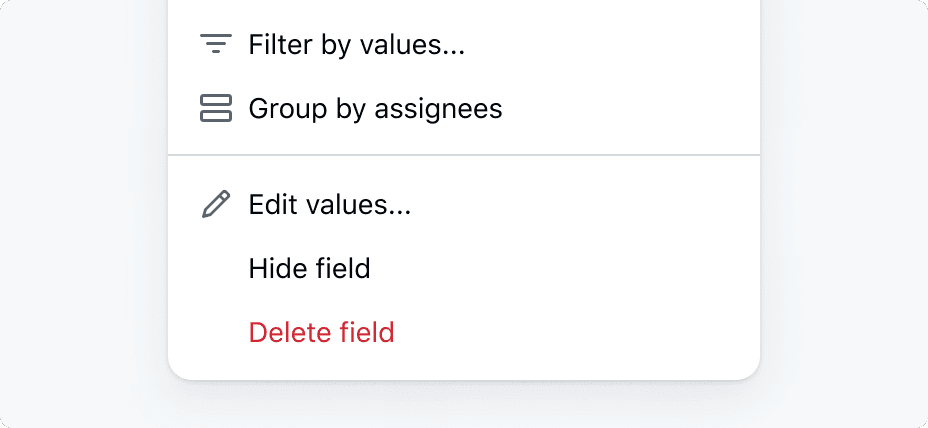 Use an arrow-right octicon in menus to indicate the action will open more options, such as in a nested context. Use a pencil octicon to indicate the item is going to be edited after clicking it.