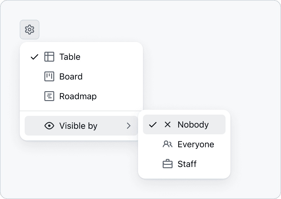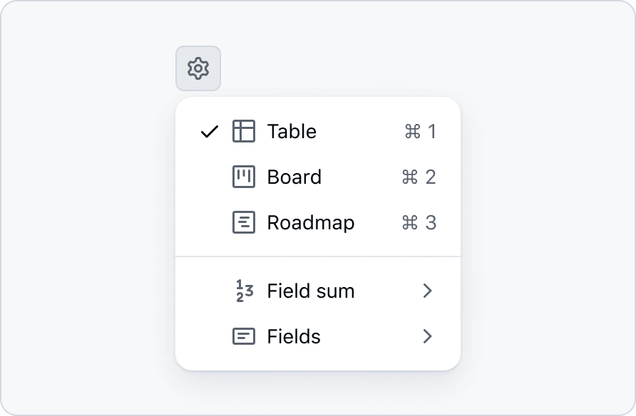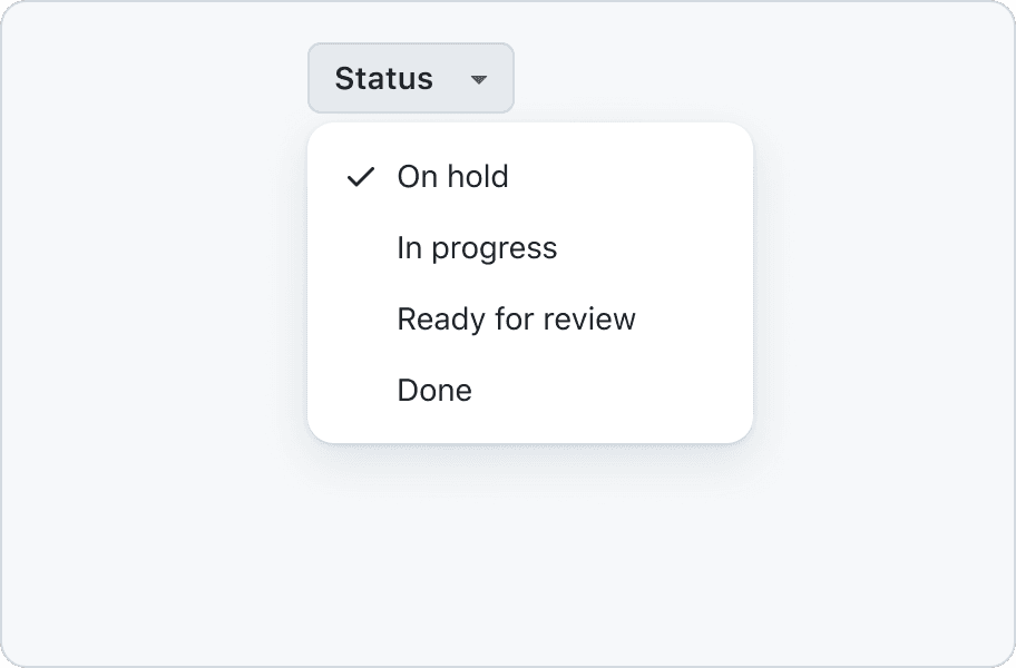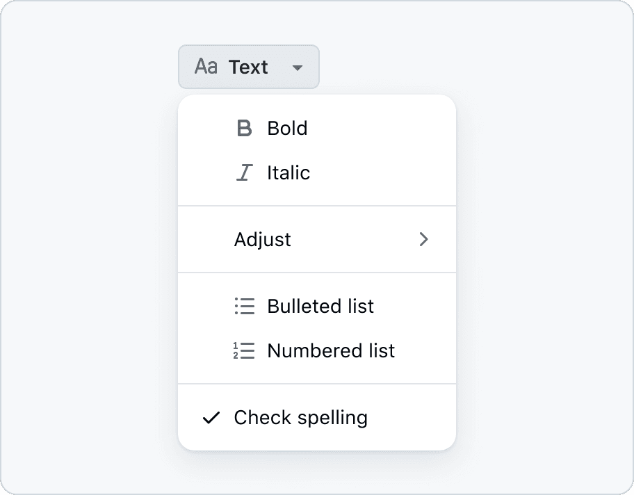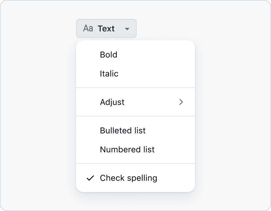 An ActionMenu with the first item in an inactive state.Edit in Figma