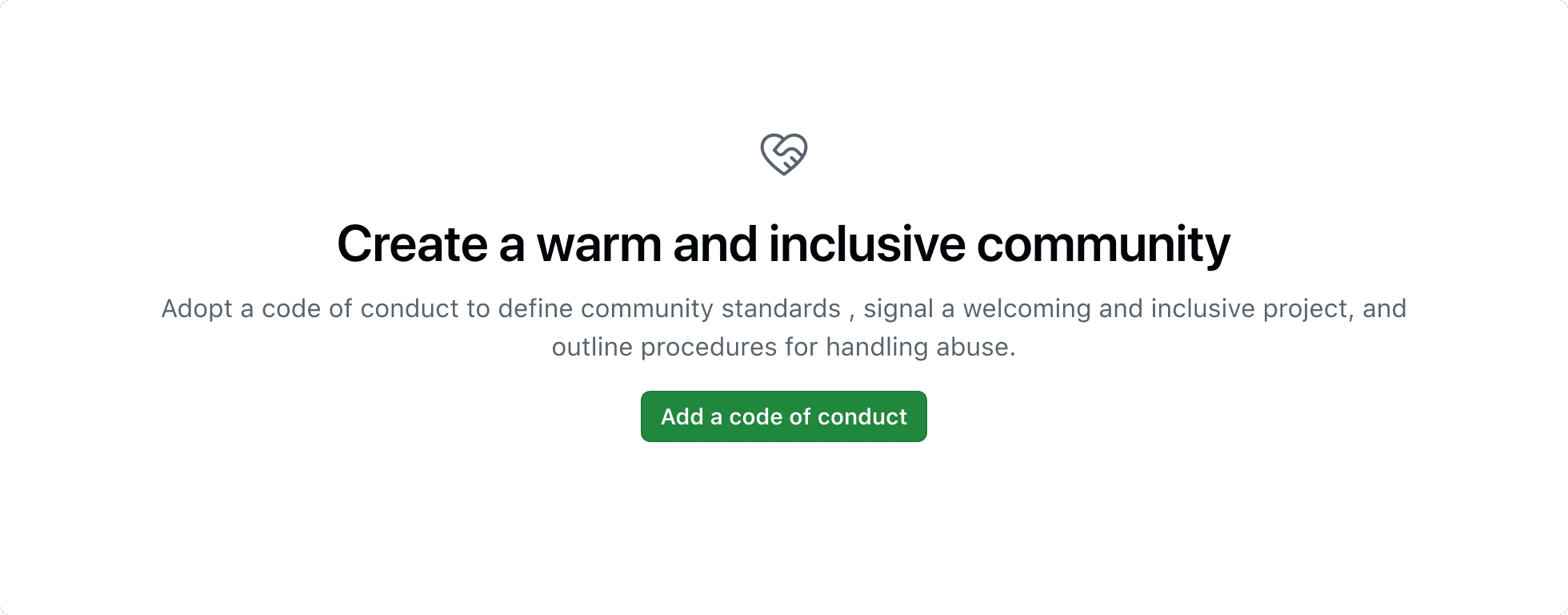 Empty states should explain features in addition to conveying intention. In the example below, the primary text is used to provide a welcome invitation to creating a positive community while the secondary text supports this intent by informing the user on how to do this by providing a code of conduct.