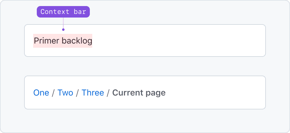 The context bar is a generic slot for any component above the title region. Use it for custom breadcrumbs and other navigation elements instead of parent link.