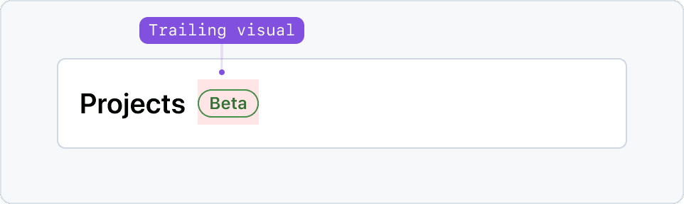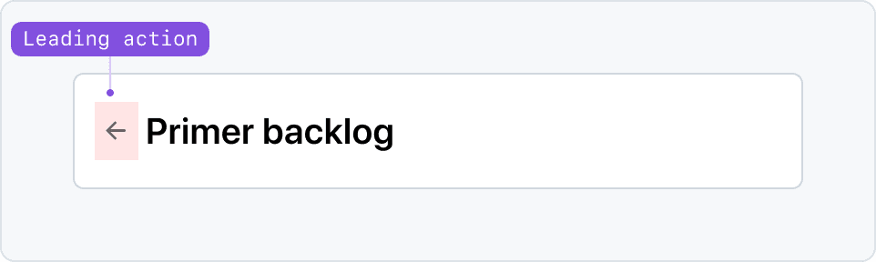Leading visuals are optional and appear at the start of the title. They can be octicons, avatars, and other custom visuals that fit a small area. Leading visuals remain visible on all viewports.