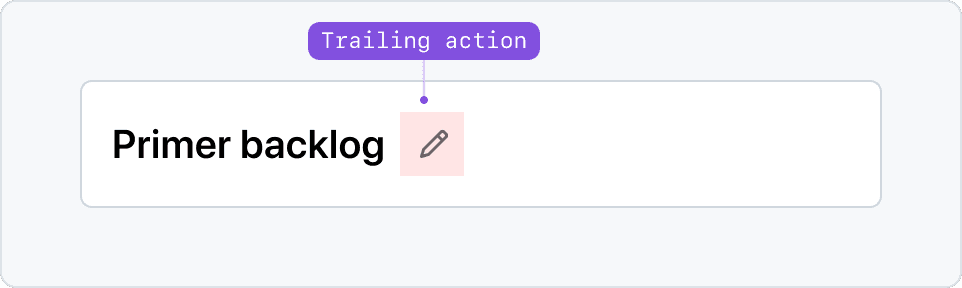 Trailing action can display subtler actions aligned directly next to the title. On narrow viewports, replace the trailing action with an item in an overflow button.