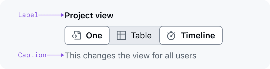 An optional caption may be used to provide additional context to help users make a selection or explain what effect the selection will have. Caption text should be as short as possible.