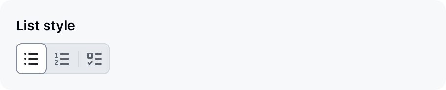 A SegmentedControl should have 2–5 choices with text labels, or up to 6 icon-only segments. If more are needed, consider another choice selection component such as RadioGroup or ActionMenu.