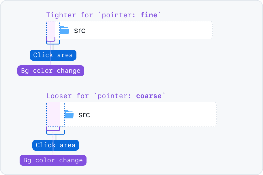 When we detect that the user is on a device with a coarse pointer, the click target is enlarged.