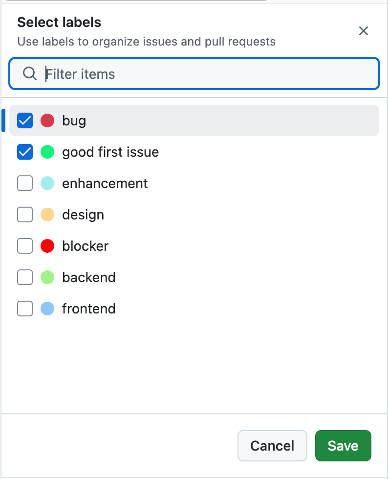 SelectPanel.Header | onOpenChange | There is no explicit "save" button in the stable SelectPanel (except for modals and narrow screens). Instead, the panel is closed on click outside or escape, and the onOpenChange callback function is called. |